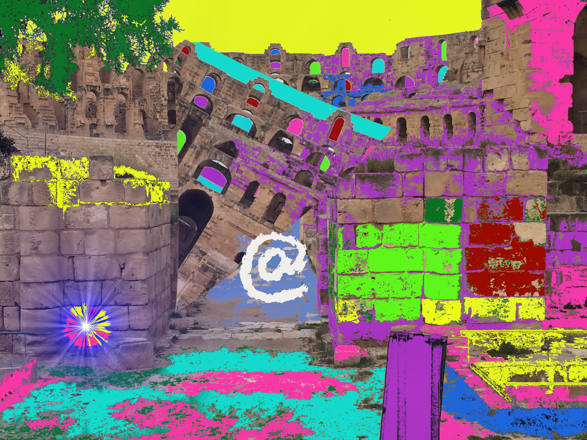 ‘manipolo’ le immagini con colori molto intensi per modificarne le proporzioni, creo forti contrasti per mutare profondità e forme, riempio gli spazi per